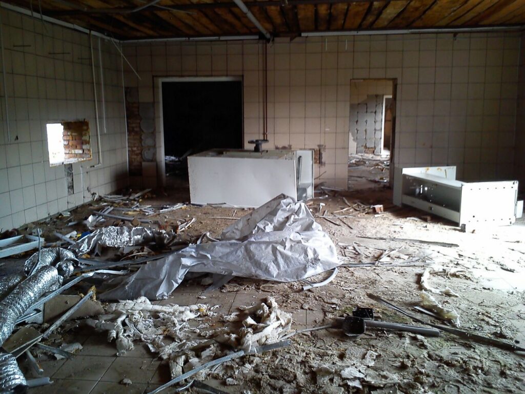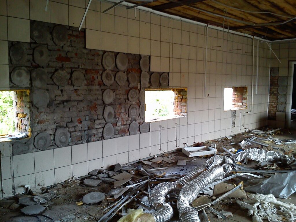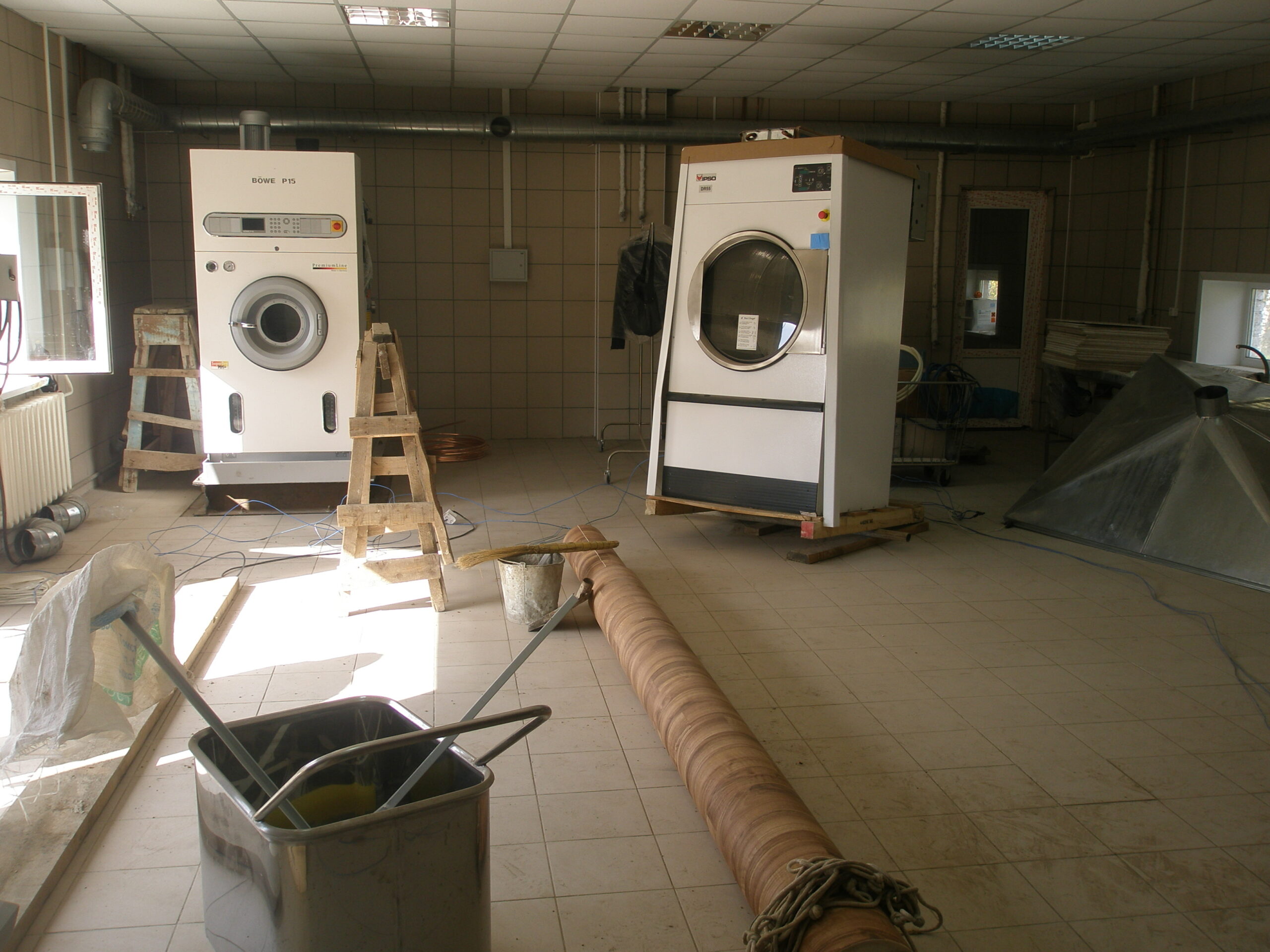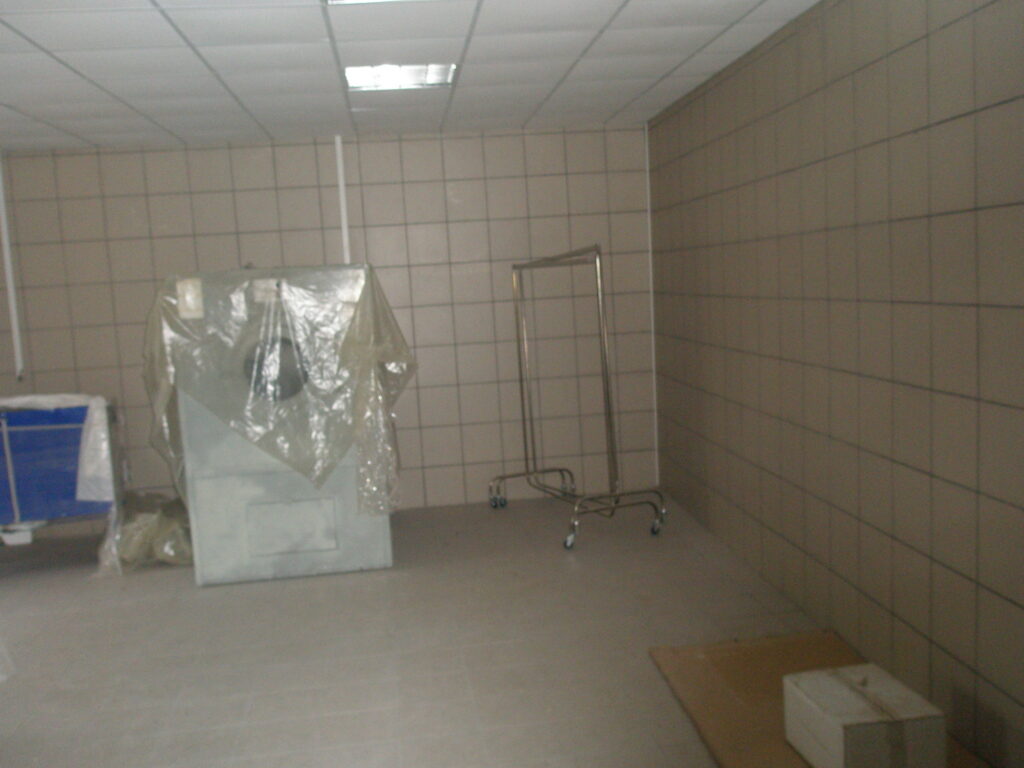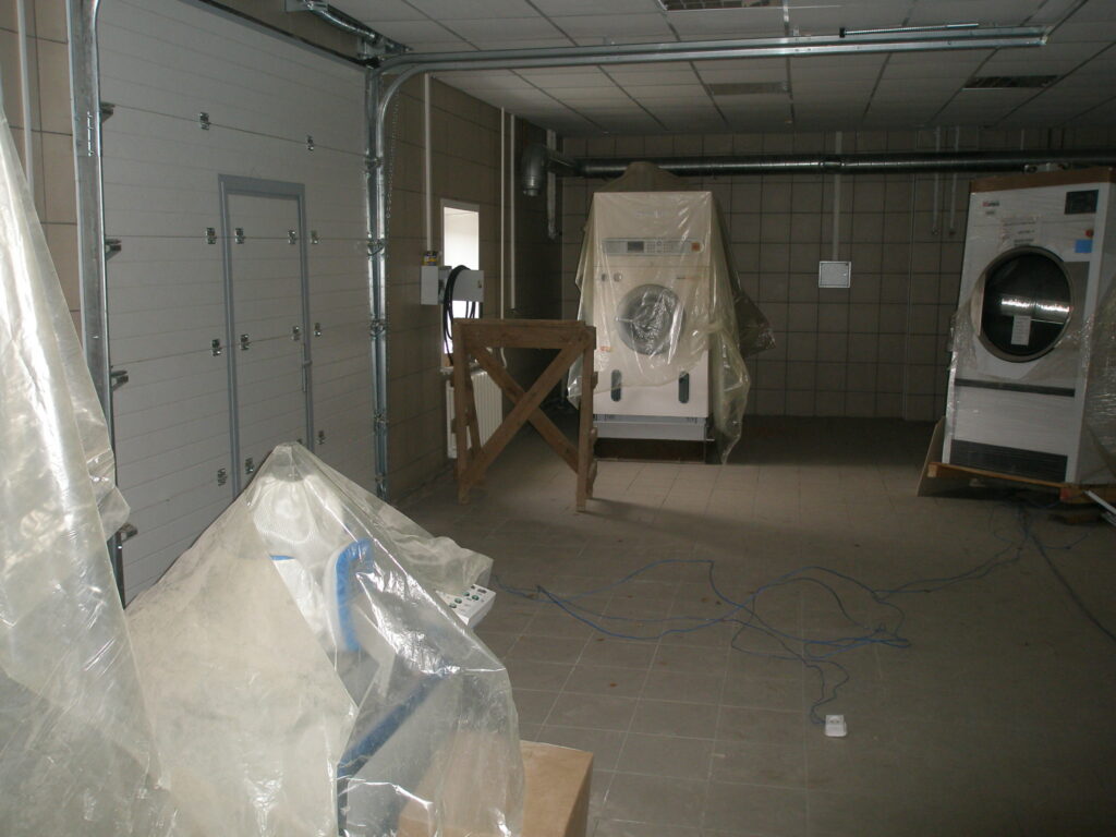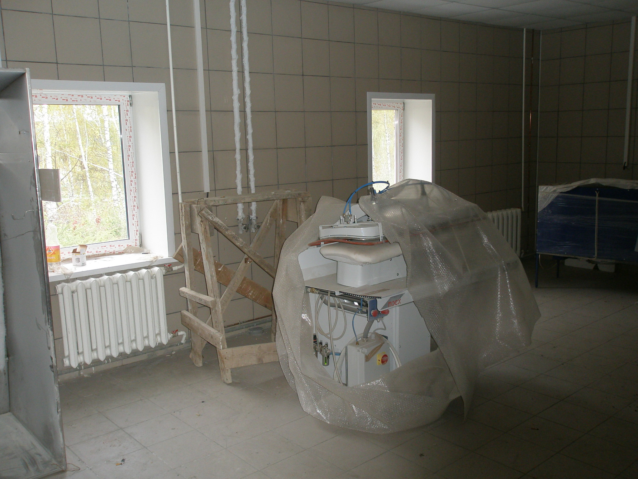 UPD: В 2014 году бандитско-ментовская мафия — видимо, в отместку за мои попытки привлечь их уголовной ответственности — уничтожили фабрику: сняли и вывезли все окна, двери, другое инженерное оборудование. Украли бытовую и сантехнику. Разворовали склад. Оборудование химчистки уничтожили монтировками или обрезками труб. После этого химчистка стала выглядеть следующим образом. Естественно, что мои попытки привлечь виновных к уголовной ответсвенности опять ни к чему не привели — уголовное дело было в очередной раз заволокичено (подробнее читайте здесь).